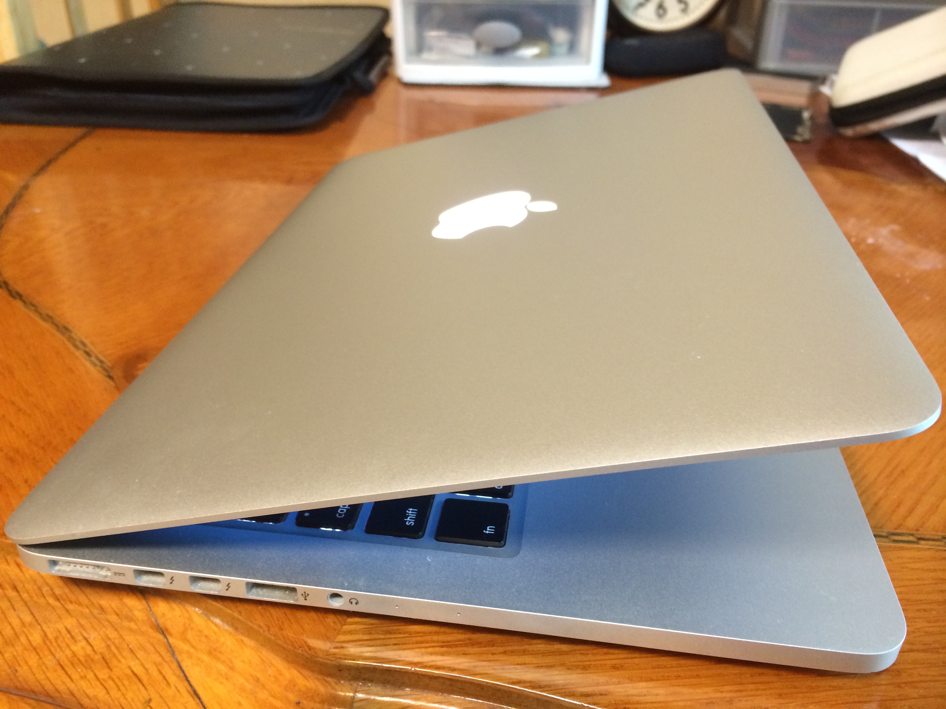 작년 말에 미국에서 산 맥북 프로 레티나 13인치 모델입니다. 좀 써봤으나 맥 OS에 적응 못하고 다시 윈도우로 돌아가려고 합니다.