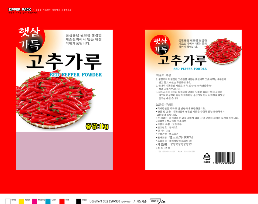 햇살가득 로고에 먹이 들어가니깐 햇살가득 같지가 않아요^^;; 고추가루 빨간색이 좋네요.